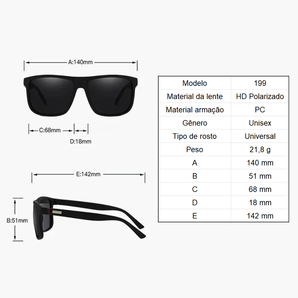 Equipados com lentes polarizadas e a proteção UV400, estes óculos garantem que seus olhos estejam protegidos contra os raios UV nocivos e o deslumbramento, tornando-os perfeitos para dirigir, pescar ou qualquer atividade ao ar livre.